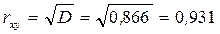 Полученное значение коэффициента детерминации является достаточно большим и характеризует правильность подбора линейной функции для построения эконометрической модели. В 86, 6% случаев изменения х приводят к изменению y. Остальные 13, 4% изменения y объясняются факторами, неучтенными в модели. 10. Находим множественный коэффициент корреляции как квадратный корень с коэффициента детерминации. Для этого используем функцию КОРЕНЬ категории " Математические". В нашем случае, поскольку модель однофакторная, то множественный коэффициент корреляции совпадает с обычным линейным коэффициентом корреляции, который равен На основании шкалы Чеддока можно сделать вывод, что связь между х (затраты на продвижение товара) и у (размер полученной прибыли) является очень высокой.