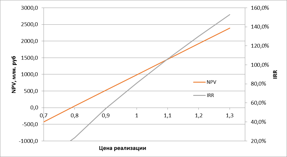 Рисунок 12. Чувствительность проекта к ценам на энергоресурсы