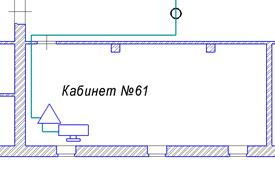 Рисунок 25 - Схема проложенной сети в кабинет №61 Затем подключался кабинет №62, закрепленный за преподавателем Зимой Г.Ф. Схема протянутого кабель от коммутатора показана на рисунке 26.