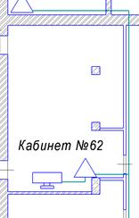 Рисунок 26 - Схема проложенной сети в кабинет №62 Следующим из кабинетов был подключен кабинет № 63, закрепленный за преподавателем Нерух Н.В. Кабель был протянут вдоль 1 этажа до кабинета, как показано на рисунке 27.