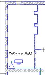 Рисунок 27 - Схема проложенной сети в кабинет №63. Таким образом в 6 корпусе ГБОУ СПО ССУЗ КГСТ на 1 и 2 этажах были подключены 7 рабочих станций к общей сети техникума.