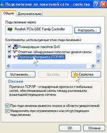 В появившемся окне в центральном списке выбираем вариант «Протокол интернета TCP/IP» и чуть ниже справа жмем на кнопку " свойства", как показано на рисунке 34.