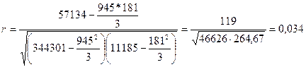 Таким образом, уравнение связи, описывающее изучаемую зависимость, примет вид: Полученный коэффициент уравнения (b=0, 003) свидетельствует о незначительной связи рассматриваемых показателей. Для подтверждения сделанных выводов рассчитаем коэффициент корреляции (чем ближе его величина к 1, тем теснее связь между рассматриваемыми явлениями, такими как затраты на обучение и количество продвигающихся по карьерной лестнице работников): - для категории рабочих: