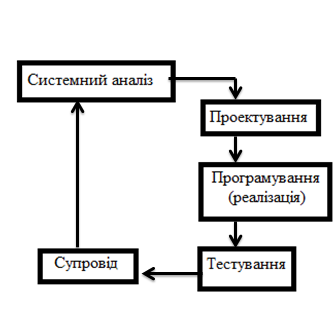 Каскадна (водоспадна, 70 – 80 рр.) – в рамках цієї моделі процес розробки відбувається послідовно по етапах життєвого циклу. Водоспадна система застосовується для програм однорідних інформаційних систем. Її основною характеристикою є розбиття всієї розробки на етапи, причому перехід з одного стану на наступний відбувається тільки після того, як буде повністю завершена робота на поточному етапі. В даній курсовій роботі використовується саме ця модель.