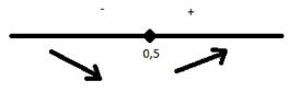 Литература 1. Богомолов Н.В. Практические занятия по математике. – М.: Высш. шк., 2009 2. П.Т.Апанасов, М.И.Орлов. Сборник задач по математике. – М.: Высш. шк., 2009 Методические указания Исследование функций с помощью производной. Нахождение промежутков монотонности Теорема1. Если функция f(x) определена и непрерывна на промежутке (а; b) и f ‘(x) всюду положительна (f ‘(x)> 0), тогда функция возрастает на промежутке (а; b). Теорема2. Если функция f(x) определена и непрерывна на промежутке (а; b) и f ‘(x) всюду отрицательна (f ‘(x)< 0), тогда функция убывает на промежутке (а; b). Пример1. Исследовать на монотонность у= Решение: у’=2х-1 2х-1=0 х=0, 5 Числовая ось разбита на два интервала