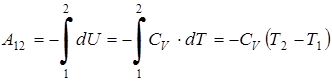 т.е. работа совершается газом за счет убыли его внутренней энергии. Приращение внутренней энергии идеального газа можно выразить через теплоемкость и приращение температуры