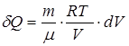 Подводимое тепло расходуется на совершение работы газом над внешними телами. Получим выражение для работы при изотермическом процессе. Для этого, предварительно выразив давление из уравнения Менделеева-Клапейрона, подставим его в формулу для работы