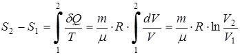 Для приращения энтропии получаем