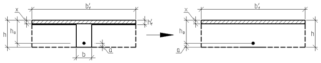 Рис. 31. 1 случай положения границы сжатой зоны бетона в элементах таврового профиля. 2 случай. Граница сжатой зоны находится в ребре (рис. 32). Расчет проводят по формулам таврового профиля.