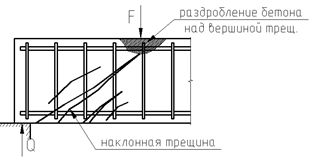 На приопорных участках под действием поперечной силы и изгибающего момента в сечениях, наклонных к продольной оси элемента, развиваются напряженно-деформированные состояния, как и в нормальных сечениях. Главные растягивающие и главные сжимающие напряжения действуют под углом к оси (рис. 36).