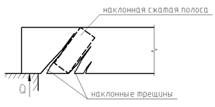 Образование наклонной трещины происходит при При разрушении происходит взаимное смещение частей элемента по вертикали. Расчет прочности наклонных сечений на действие поперечной силы производят в обязательном порядке.