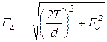 При одновременном нагружении осевой силой Fa и вращающим моментом Т, расчет проводим по равнодействующей силе FΣ , составляющими которой будет окружная сила