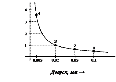 Рис. 1.16. Зависимость себестоимости от величины допуска