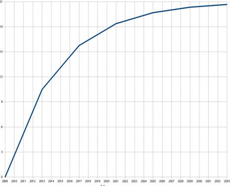 Рисунок 3 - График эмиссии Bitcoin (млн)