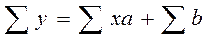 у цьому рівні невідомі лише а і b, а відомі yф и xфакт Для знаходження мінімуму похідні по а і b прирівнюються до 0: