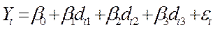 dt1 = 1, якщо місяць t є зимовим, dt1 = 0, в останніх випадках; dt2 = 1, якщо місяць t є весняним, dt2 = 0, в останніх випадках; dt3 = 1, якщо місяць t є літнім, dt3 = 0, в останніх випадках. Треба оцінювати рівняння