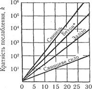 Товщина екрана d, cm Рис. 2.39. Монограма для визначення товщини захисного екрана від гамма-випромінювання радія (*— для бетону d множиться на 4)