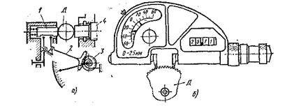 Рис. 4.10. Рычажно-зубчатые микрометрические скобы с отсчетом: а) –по шкалам; б)- цифровым.