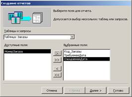 Призначення елементів списку вікна Новий звіт: