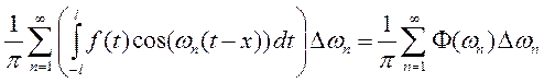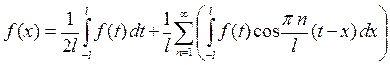 Исследуя ряд Фурье, мы доказали, что ряд Фурье сходится к f(x). Предположим, что функция f(x) является непериодической и кусочно-гладкой. Выражение интеграла Фурье получим из ряда Фурье периодической функции f(x). Для этого в ряд (32) подставим выражение коэффициентов a0, an и bn