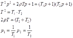 В этом случае передаточную функцию звена 2-го порядка можно представить в виде произведений ПФ 1-х порядков.