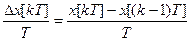 Т=const – период квантования k - номер периода, t=0T, 1T, 2T, …, kT t*=t/T=0, 1, 2, …, k x[k] – относительная величина В период kT функции 1 и 2 имеют одно и тоже значение, но мы не знаем значения решетчатой функции в моменты времени между квантами. Значения импульсной функции постоянны на периоде Т, но ширина импульса может колебаться 0< =tи< =T. Рассмотрим понятие производной по отношению к импульсным функциям. Вообще говоря, понятие производной по отношению к импульсным системам некорректно (здесь нет и дифференциальных уравнений). Используются разностные уравнения: