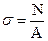 1.На ділянці з рівномірно розподіленим навантаженням q епюра N(z) лінійна (описується рівнянням прямої лінії, нахиленої до нульової), якщо q=0, то N(z)=const. У нашому випадку на першій і другій ділянках N(z) є лінійною, на третьому - постійна. 2.У перерізах прикладення зосереджених сил на епюрі N(z) спостерігаються стрибки на величини цих сил. У перерізах прикладення сил F1, F2 та реакції Н на епюрі маються стрибки на їхні величини відповідно. Нормальне напруження при центральному розтяганні-стисканні. Розглянемо розтягання прямолінійного стержня довільного поперечного перерізу під дією двох рівних по величині та протилежно спрямованих сил (рис.2.3а). У деякому місці стержня уявно проведемо поперечний переріз, відкинемо одну з частин, дію відкинутої частини замінимо внутрішнім зусиллям N, що з рівняння статичної рівноваги SFiz = 0 визначиться як N = F (рис.2.3б). Поздовжня сила N є рівнодіючою (результуючою) внутрішніх зусиль довільним образом розподілених по перерізу А, перпендикулярному осі стержня. Отже, поздовжня сила N, спрямована по осі стержня, є нормальною (перпендикулярною) до перерізу. Так як поздовжня сила є результуючою розподілених внутрішніх зусиль (а це нормальне напруження), то і розподілені внутрішні зусилля повинні бути перпендикулярні перерізу. Тобто, при центральному розтяганні (також і при центральному стисканні) у поперечному перерізі виникає тільки нормальне напруження s (рис.2.3.в). Очевидно, що на елементарну площадку dA діє елементарна поздовжня сила dN = sdA. Відкіля одержуємо рівняння в інтегральному вигляді: