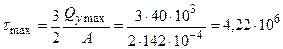 відкіля: 3. Максимальне дотичне напруження для прямокутного перерізу: Визначаємо розміри поперечного перерізу з умови міцності по дотичним напруженням: З умови міцності по дотичним напруженням розміри поперечного перерізу більше, ніж з умови міцності по нормальним напруженням.