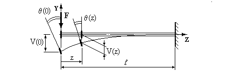 Приклад 1. Розглянемо консольну балку, навантажену на вільному торці зосередженою силою (рис.8.2).
