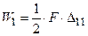 1. Перший стан. У точці 1 прикладемо зосереджену силу F. Прогин у точці 1 дорівнює , у точці 2 - . У перерізах балки виникає згинальний момент від зовнішнього навантаження . Сила F прикладається статично і виконує роботу на шляху (див. графік на рис.8.3.1). Визначаємо потенційну енергію деформації, виражену через згинальний момент , за формулою (7.12): . Але потенційна енергія деформації чисельно дорівнює роботі зовнішніх сил , тобто: .