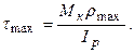 Рис.10.5. Як видно з приведених на рис.10.5 епюр дотичних напружень, максимальні дотичні напруження виникають у крайніх точках перерізу, де r = rmax: