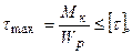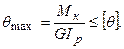 де [t] – допустиме дотичне напруження, обумовлене відношенням границі текучості матеріалу до коефіцієнту запасу міцності nт, тобто: З умови міцності полярний момент опору повинний бути обраний за формулою: