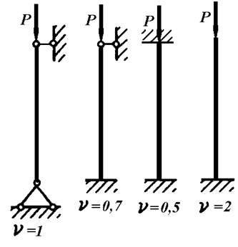 Рівняння (11.4) має назву формули Л.Ейлера. Практично нас цікавить найменше значення поздовжньої сили