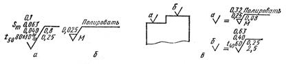 Рис. 6.3. Примеры обозначений шероховатости Количественный контроль параметров шероховатости осуществляют бесконтактными и контактными средствами измерения. Для количественной оценки шероховатости поверхности бесконтактным методом используют два способа: увеличение их с помощью оптической системы или с использованием отражательных способностей обработанной поверхности. Приборами, основанными на оценке поверхностных неровностей при увеличении их с помощью оптической системы, являются «приборы светового сечения». Принцип действия таких приборов заключается в получении увеличенного изображения профиля измеряемой поверхности с помощью лучей, направленных наклонно к этой поверхности, и измерении высоты неровностей в получаемом изображении. Наиболее распространенными являются двойной микроскоп типа МИС-11 и ПСС-2. Приборами, основанными на отражательной способности, являются микроинтерферометры. Принцип действия интерферометра основан на использовании явления интерференции света, отраженного от образцовой и исследуемой поверхностей. Форма образующихся интерференционных полос зависит от вида и высоты неровностей контролируемой поверхности. Принцип действия микроинтерферометра такой же, как и обычного, но отличается тем, что в качестве одной из поверхностей, которая создает интерференционную картину, используется измеряемая поверхность. Прибор предназначен для измерения поверхностей с малыми неровностями, так как на грубых поверхностях интерференцию получить невозможно. Наиболее типичным является прибор ММИ-4. Для количественной оценки шероховатости поверхности контактными средствами измерения применяются щуповые приборы (профилографы-профилометры и профилометры). Профилометр-профилограф состоит из двух приборов в зависимости от характера выдаваемой измерительной информации: профилографа и профилометра. Отечественная промышленность выпускает несколько моделей приборов (201; 202; 252), основанных на индуктивном методе преобразования колебания иглы в колебания напряжения. Профилограф – прибор для записи величин неровностей поверхности в нормальном к ней сечении в виде профилограммы, при обработке которой определяются параметры, характеризующие шероховатость поверхности. Профилометр – прибор для измерения поверхностных неровностей в нормальном сечении; результаты измерения представляются на шкале прибора в виде значений одного из параметров, используемого для оценки этих неровностей. Влияние параметров шероховатости на эксплуатационные свойства деталей показаны в табл. 6.4.