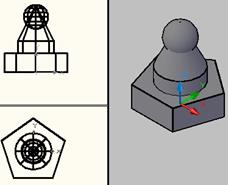 Создадим видовые экраны, для чего: Вид > Видовые экраны > Создать > Д\о > Три слева > ЮВ изометрию > Визуальный стиль: Просвечивание > щелкнем Сверху > построим отрезок длиной 1510мм, для чего: Отрезок > щелкнем в любом месте > Орто > вправо 1510Е > построим две кривые, для чего: Сплайн > щелкнем в 4-5 местах вдоль отрезка(создана первая кривая) > щелкнем в 4-5 местах вдоль отрезка(создана вторая кривая) > поднимем отрезок на высоту 2500мм, для чего: щелкнем на Спереди > > щелкнем по отрезку > Е > щелкнем по базовой точке через привязку Конточка > вверх 2500Е(отрезок поднялся)> аналогично поднимем меньший сплайн > Главная > Моделирование > По сечению > щелкнем по: отрезку, среднему затем нижнему сплайну> Е(создалась поверхность).