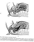 Выворот может быть частичным, если вывернуто только тело или только верхняя ее часть, и полным, когда матка целиком вывернута наружу. Если матку не вправить, то наступает ее некроз. Распознавание является несложным благодаря характерному анамнезу и типичной клинической картине: из половой щели выдается наружу мягкая округлой формы опухоль ярко-красного цвета, через переднюю брюшную стенку вместо матки пальпируется воронкообразное углубление. Диагностика облегчается, когда с дном матки визуализируется прикрепленный послед,.Лечение. Заключается в немедленном проведении противошоковых мероприятий и вправлении под глубоким наркозом вывернутой матки. Предварительно вводят спазмолитические препараты. После удавшегося вправления влагалище тампонируют стерильным бинтом, капельно вводят сокращающие матку средства. При неудавшихся попытках вправления может встать вопрос об удалении матки предпочтительно влагалищным путем.