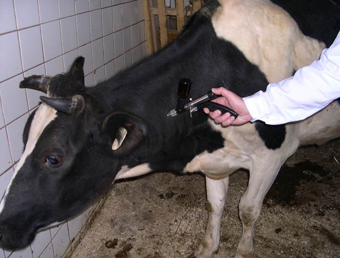 Лечение направлено на уничтожение личинок в теле животного. С этой целью проводят ранние обработки животных после прекращения лета оводов, воздействуя на личинок 1 стадии, находящихся в состоянии миграции по организму животного. Если ранние обработки не проводились или оказались неэффективными, проводят поздние обработки, направленные на уничтожение 2 и 3 стадии личинок. Обработки подлежит все поголовье скота, выпасавшееся на пастбище, в том числе скот фермерских и индивидуальных хозяйств. Применяют инсектициды системного действия: гиподермин – хлорофос выпускается в готовом для употребления виде. Его применяют как для ранних так и для поздних обработок путем поливания тонкой струйкой по обе стороны позвоночника от холки до крестца с помощью специального дозатора, шприца – полуавтомата Шилова, шприца Жане в дозах: гиподермин – хлорофос животным массой до 200 кг – в дозе 16 мл, более 200 кг – 24, диоксафос – к и гиплофос соответственно 12 и 16 мл. Ивомек, цидектин применяют подкожно 1 ми на 20 кг, но не более 20 мл на животное. Также для лечения животных применяют гзавон-2 в дозах – 150 мл на животное массой 200 кг, 100мл – масса животного до 200 кг, негувон – 24 мл на животное, гиподектин – 10 мл – для поливания вдоль позвоночного столба. Аверсект-2, фармацид – 0.5 мл/50 кг живой массы подкожно, дектомакс – 0.1 мл/50кг, гиподектин инъекционный - 0.1мл/50 кг подкожно. Водный раствор бутокса 200-250 мл/животное путем поливания вдоль позвоночного столба. Ивомек – антибиотическое соединение, продуцируется почвенными микроорганизмаи str. avermitilis. Вещество состоит из двух гомолагичных соединений. Обладает широким противопаразитарным действием у с/х животных. Диоксафос – раствор хлорофорса 16% концентрации в органическом растворителе. Циперметрин – смесь 4 дистереоизометрических форм соединений, содержащего цианогруппу (CN) пиретроид обладает выраженным инсектицидным действием. В организме и вне его быстро распадается. Для лечения животных в данном хозяйстве был назначен препарат аверсект-2. Механизм исектоакарицидного действия состоит в ингибировании фермента холинэстеразы путем ее фосфарилирования. В результате ингибирования холинэстеразы в тканях организма, и в частности, холинергическихсинапсах увеличивается концентрация нейтромедиатора ацетил – холина. У насекомых отмечается тремор мышц, возбуждение, нарушение координации движения, потеря функции летать. В организме биотрансформируется, не кумулируется.