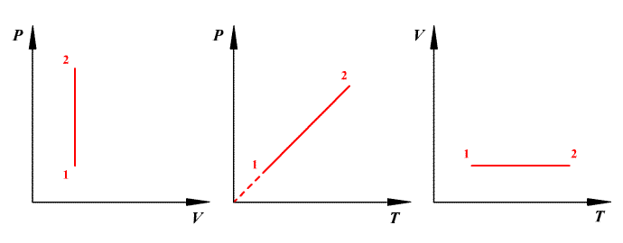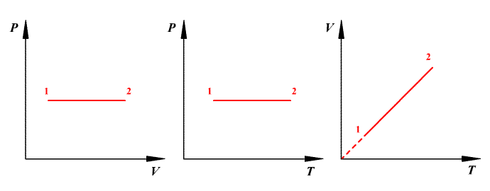 Закон, связывающий объем газа V и его температуру t, измеренную в градусах Цельсия, был установлен французским ученым Гей-Люссаком в 1802 г Для данной массы m при постоянном давлении р объем газа линейно зависит от температуры: где V0 — объем газа при нуле градусов Цельсия, α — коэффициент объемного расширения, t — температура по шкале Цельсия. График этого процесса, называемого изобарическим, представлен на рис. 2.2. Коэффициент α для всех газов равен Закон, связывающий давление газа р и его температуру t, установлен Шарлем. Для данной массы m при постоянном объеме V давление газа линейно зависит от температуры: где p0 — давление газа при нуле градусов Цельсия, β — коэффициент объемного расширения, t — температура по шкале Цельсия. График этого процесса, называемого изохорическим, представлен на рис. 2.3. Коэффициент β для всех газов равен В координатах Р–V изобарический и изохорический процессы представлены на рис. 2.4. Опытные законы Бойля-Мариотта, Гей-Люссака и Шарля справедливы для широкого интервала давлений, объемов и температур. Однако когда давления превышают атмосферное в 300-400 раз, или температуры очень высоки, наблюдаются отклонения от этих законов. Тем не менее, во многих случаях эти законы удобны для практического применения. Если бы существовал газ, для которого не было бы отклонений от этих законов, то такой газ был бы идеальным газом.