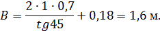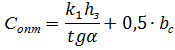 где k1 – коэффициент, учитывающий форму поперечного сечения борозды, для сильнотрещиноватых пород k1=1; hз – величина заглубления зуба, м, hз=0, 7; α – угол наклона боковых стенок борозды, град, в зависимости от крепости пород α принимается в пределах 40-60о. Для данного известняка α =45о; bс – ширина основания борозды, м, bс=2b1; b1 – ширина наконечника зуба, b1=90 мм.