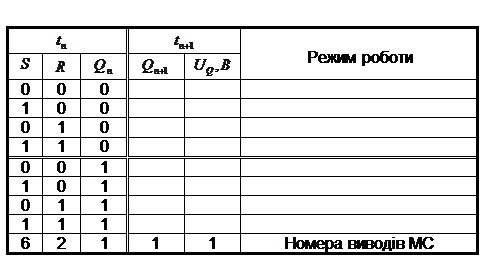 Таблиця 1. Скорочена таблиця переходів RS- тригера