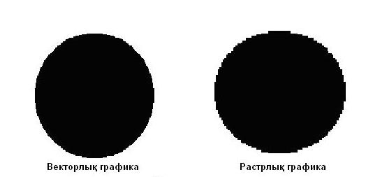 Компьютерлік графикада суреттің негізгі екі тү рі бар. Олар: растрлық жә не векторлық графикалар. Растрлық графикадағ ы кескін элементтерінің ө лшемдері бірдей тіктө ртбұ рышты матрицалардан қ ұ ралады. Олардың ә рқ айсысының тү стік сипаттамалары болады. Нә тижесінде осындай элементтерден қ ұ ралғ ан мазайка пайда болады. Бұ л графика, кө птеген детальдары бар жә не кү рделі тү стік ө згерістері бар фотографиялық суреттерде қ олданылады. Ол - қ азіргі кездегі компьютерлерде кең таралғ ан графика. Flash MX – растрлық графикамен жұ мыс істеуде ү лкен мү мкіндіктер береді. Векторлық кескіндердің растрлық тан тү бегейлі айырмашылығ ы бар. Ол тек кескіннің негізгі нү ктелерін кескіндеп, ал қ алғ андары белгілі бір математикалық заң мен реттелетін принциппен орналасады. Мысалы: егер тү зу сызық сызатын болсақ, соң ғ ы нү ктесінің координатасын кө рсетіп жә не жалғ астырушы сызық -тү зу болу керек десек болғ аны (сурет 6).