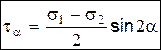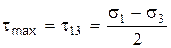 где a1, a2, a3 — углы между нормалью к рассматриваемой площадке и направлениями главных напряжений. Наибольшее касательное напряжение: Оно действует по площадке параллельной главному напряжению s2 и наклоненной под углом 45о к главным напряжениям s1 и s3.