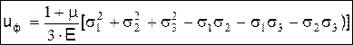 Полная энергия деформации, накапливаемая в единице объема, может рассматриваться как состоящая из двух частей: 1) энергии uo, накапливаемой за счет изменения объема (т.е. одинакового изменения всех размеров кубика без изменения кубической формы) и 2) энергии uф, связанной с изменением формы кубика (т.е. энергии, расходуемой на превращение кубика в параллелепипед). u = uо + uф.