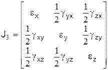 ex, ey, ez, gxy, gyz, gzx — компоненты деформированного состояния. Для осей, совпадающих с направлениями главных деформаций e1, e2, e3, тензор деформаций принимает вид: