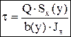 Если сечение не имеет горизонтальной оси симметрии, то эпюра нормальных напряжений s не будет симметричной. Нейтральная ось сечения проходит через центр тяжести сечения. Формулы для определения нормального напряжения для чистого изгиба приближенно годятся и когда Q¹ 0. Это случай поперечного изгиба. При поперечном изгибе, кроме изгибающего момента М, действует поперечная сила Q и в сечении возникают не только нормальные s, но и касательные t напряжения. Касательные напряжения определяются формулой Журавского: , где Sx(y) — статический момент относительно нейтральной оси той части площади, которая расположена ниже или выше слоя, отстоящего на расстоянии " y" от нейтральной оси; Jx — момент инерции всего поперечного сечения относительно нейтральной оси, b(y) — ширина сечения в слое, на котором определяются касательные напряжения.