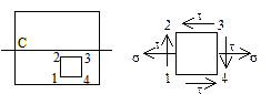 Расчет на прочность при изгибе: два условия прочности, относящиеся к различным точкам балки: а) по нормальным напряжениям , (точки наиболее удаленные от С); б) по касательным напряжениям , (точки на нейтр.оси). Из а) определяют размеры балки: , которые проверяют по б). В сечениях балок могут быть точки, где одновременно большие нормальные и большие касательные напряжения. Для этих точек находятся эквивалентные напряжения, которые не должны превышать допустимых. Условия прочности проверяются по различным теориям прочности