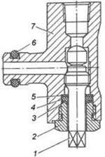 1 – пробка крана; 2 – гайка; 3, 5 – шайбы; 4, 6 – уплотнительные кольца; 7 – корпус крана