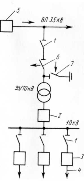 1. Изучите ГОСТ 2.710-81 «Обозначения буквенно-цифровые в электрических схемах», ГОСТ 2.721-74 «Обозначения условные графические в схемах. Обозначения общего применения», ГОСТ 2.702-75 «Правила выполнения электрических схем», ГОСТ 2.701-84 «Единая система конструкторской документации. Схемы». 2. Выполните чертеж принципиальной схемы подстанции; обозначьте на схеме разъединитель, короткозамыкатель и отделитель; прочитайте схему.