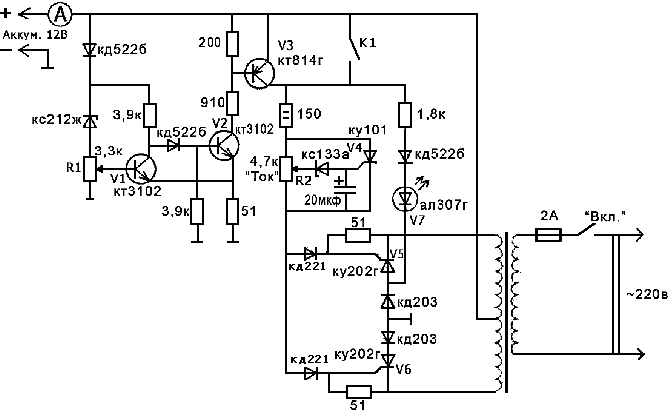 Рис.27. Принципиальная схема полупроводниковых приборов 3. Объясните условные графические и буквенные обозначения в электрических схемах. Прочитайте принципиальные схемы.