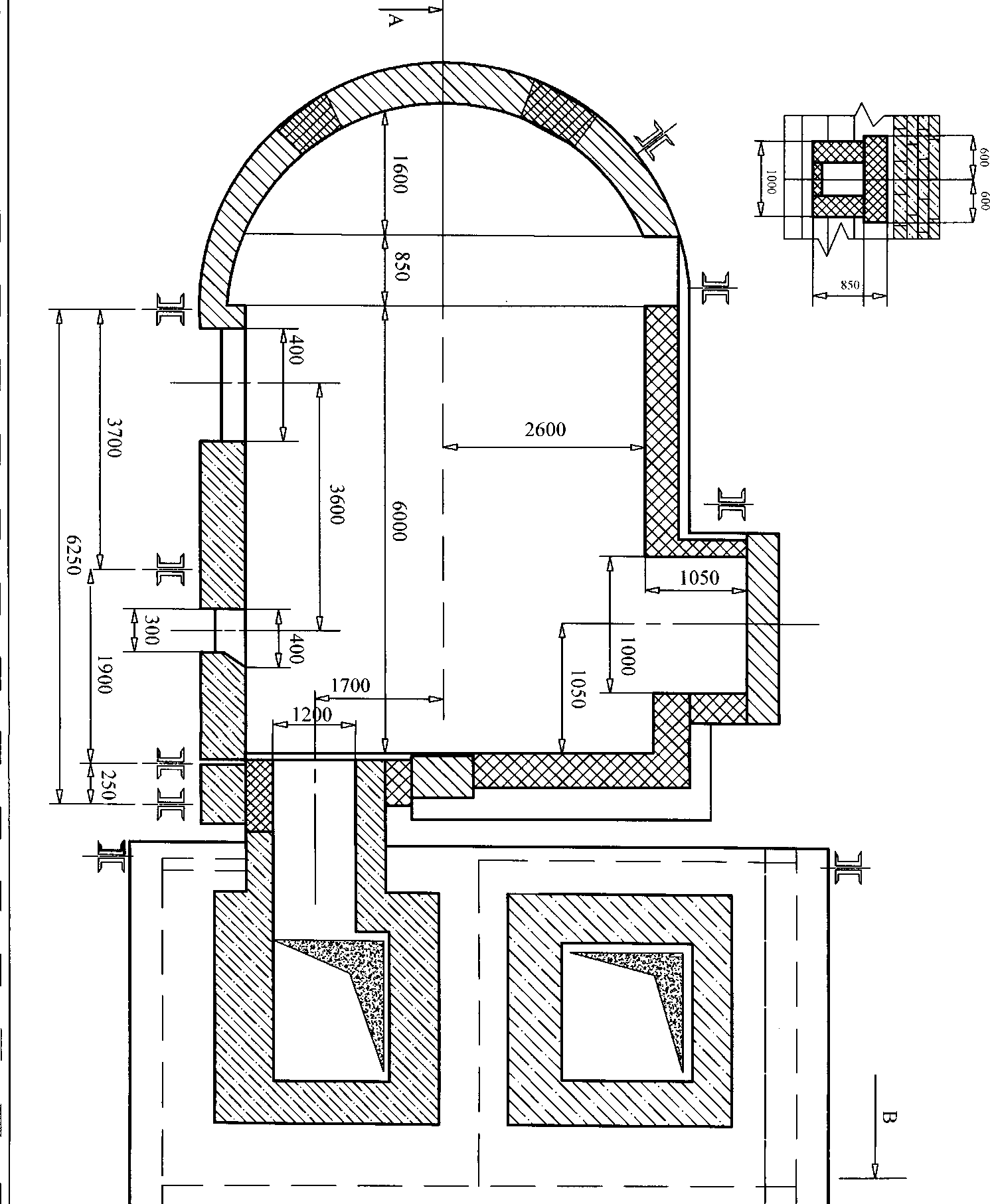 При работе печей периодического действия различают стадии разогрева, собственно варки, студки и выработки. Расход топлива является максимальным. Температура отходящих газов и подогретых горючего газа и воздуха к началу разогрева низкие, а затем они постепенно повышаются. К концу варки и стадии осветления расход топлива значительно уменьшается, а температуры отходящих газов и подогрев газа и воздуха являются высокими. В печах непрерывного действия режим стабилен. В соответствии с режимом варки расчет стекловаренной печи слагается, в случае периодического ее действия из следующих элементов: определение размеров печи, расчет горение топлива, расчет распределения температур в кладке печи в отдельные периоды, составления тепловых балансов и определения расхода топлива, расчет горелок, регенераторов или рекуператоров, клапанов и каналов, определение сопротивлений на пути движения газов и размеров тяговых устройств. Высота рабочей камеры определяется высотой горшка и окна для выработки, а также подъемом свода. Высота окружки принимается равной высоте горшка (500-700 мм). Для о удобства ручной выработки предусматривается уклон окружки 8 5 и о простенков между окнами 7 0. Высота рабочих окон составляет 300-450 мм, 1 1 подъём свода- / 2 - / ю пролета.